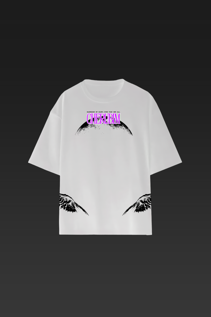 Cherubim represents purity without passivity — a guardian spirit carved in stark contrast. Set against white 240 GSM cotton, the design fuses innocence with divine duty. Its detailed back graphic speaks of loyalty, presence, and quiet strength. Sacred yet street, this tee wears like a declaration.